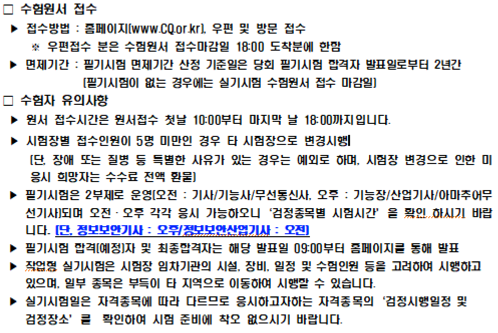 그리고 필기시험 2부제로 오전, 오후 종목 각각 응시가 가능합니다! 여러 개의 자격증을 취득할 계획이신 분들은 활용하시면 좋을 것 같습니다.